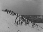 Description :VUE SUR LES MEMBRES DU CLUB SNOW SHOES EN EXCURSION. ILS POSENT DU HAUT D'UNE COLLINE