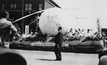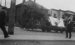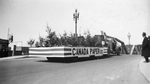 Description :2.1 - CHAR "LE TRAPPEUR CANADIEN" DON DE JOSAPHAT HAINS. EN ARRIERE-PLAN, DES DEMEURES. 2.2 - CHAR SUR LEQUEL ON RETROUVE LES BLASONS DES PROVINCES CANADIENNES ET LE MOT "O CANADA" DON DE LA TRIBUNE. A GAUCHE, L'EPICERIE "BERNARD ET CIE". AU-D...