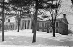 Description :VUE DE BIAIS DE L'ANCIEN PALAIS DE JUSTICE SUR LA RUE WILLIAM. LA FACADE EST DE STYLE NEO-CLASSIQUE. SIX COLONNES DORIQUES SUPPORTENT LE TOIT DU PORCHE. A L'AVANT, QUATRE ARBRES ET DE LA NEIGE