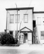 Description :BATIMENT EN BOIS DE LA AUSTIN GLOVE CO. - 3.1 : VUE DE LA RUE LAURIER. A GAUCHE, L'IMMEUBLE DE L'AUSTIN GLOVE A TROIS GRANDES FENETRES EN HAUT ET DEUX EN BAS, UNE PORTE D'ENTREE SURMONTEE D'UN PIGNON. A DROITE, ON APERCOIT UNE LONGUE DESCENTE ...