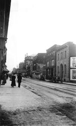Description :20.1 - JONCTION DES RUES DES GRANDES FOURCHES SUD ET KING OUEST. A GAUCHE, LE BATIMENT DU GARAGE "MCKEE SALES AND SERVICE CO.". DERRIERE MCKEE, L'HOTEL QUEEN ET DERRIERE L'HOTEL, LE MARCHE LANSDOWNE. DES HOMMES DISCUTENT DANS LA RUE KING OUEST...