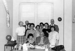 Description :2.1 - HUIT FEMMES ET DEUX HOMMES ENTOURENT JAMES RIDDLE SANGSTER. SUR LES MURS IL Y A DES BALLONS. 2.2 - JAMES RIDDLE SANGSTER RECOIT UN CADEAU. IL EST ENTOURE DE FEMMES.