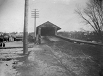 Description :VUE DU PONT COUVERT DE FITCH BAY. IL EST DE STYLE "TOWN" SIMPLE ET MESURE 28 METRES DE LONG. LE BAIE FITCH PASSE EN-DESSOUS. A GAUCHE, UNE CLOTURE. EN AVANT-PLAN, UN ARBRE SANS FEUILLE.