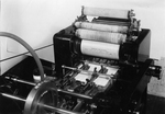 Description :VUE D'UNE PRESSE ROTATIVE. LE PAPIER DANS LA MACHINE PORTE LA MENTION "SUMMARY FOR PAYROLL".