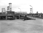 Description :ENTREE DU STATIONNEMENT. BATIMENT DE GENEST NADEAU FARINES GRAINS MOULEES A L'ARRIERE.