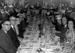 Description :PLUSIEURS PERSONNES SONT ATTABLEES DANS UNE SALLE DE RECEPTION. AU FOND, LA TABLE D'HONNEUR. PLUSIEURS PERSONNES IMPLIQUEES DANS LA TRIBUNE SONT PRESENTES. ON RECONNAIT: GORDON BEERWORTH, GUY BACHAND IMPLIQUE DANS LA DISTRIBUTION DE FILMS A SH...