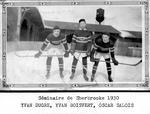 Description :LES JOUEURS PRENNENT LA POSE DEVANT LES ENTREPOTS DU SEMINAIRE. DE GAUCHE A DROITE: IVAN DUGRE, IVAN BOISVERT ET OSCAR SALOIS.