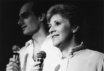 Description :DANIELLE ODERRA ET JEAN MARCHAND DEVANT LEUR MICRO.