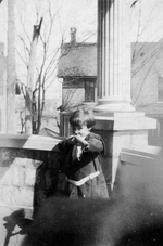 Description :DEVANT L'UNE DES GROSSES COLONNES DE LA VERANDA, PAUL EN HABIT DE MATELOT SOURIT TIMIDEMENT A L'OBJECTIF. A L'ARRIERE-PLAN, MAISON NEOGOTHIQUE.