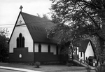 Description :LA CHURCH OF THE ADVENT EST UN EDIFICE D'UN ETAGE ET DEMI A PIGNON. REVETEMENT DE BARDEAUX DE BOIS A MOTIF EN ECAILLES ET PLANCHES A CLIN, TOIT D'ARDOISE, ESCALIER LATERAL, CROIS CELTIQUE.