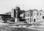 Description :VUE DE LA CENTRALE A PARTIR DE LA GORGE. LES MURS DE BRIQUE SONT PRESQUE TERMINES. QUELQUES TRAVAILLEURS SONT AU SOMMET DE LA TOUR D'EAU QUI SERT A REGULARISER LA PRESSION DE L'EAU QUI ENTRE A LA CENTRALE. LE CANAL D'AMENEE EST PRESQUE COMPLET...