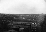 Description :VUE D'UNE PARTIE DU CENTRE ET DE L'EST DE SHERBROOKE. DES OUVRIERS FORMENT LE TOIT DE LA QUINCAILLERIE. A L'AVANT-PLAN, QUELQUES PERSONNES SONT SUR LE TOIT DU THEATRE CLEMENT. A DROITE DE LA QUINCAILLERIE, VUE PARTIELLE DE LA BANQUE NATIONALE....