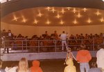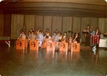 Description :INSTALLES DANS UN KIOSQUE A MUSIQUE, UN HIGH SCHOOL BAND S'EXECUTE DEVANT LA FOULE.