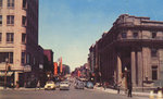 Description :VUE SUR WELLINGTON NORD, A PARTIR DE LA RUE KING. A GAUCHE, EDIFICE CONTINENTAL, A DROITE, BANQUE DE COMMERCE. ALIGNEMENT DES COMMERCES DONT LE GRANADA, LE RESTAURANT OLIVIER. UN POLICIER DIRIGE LA CIRCULATION.