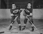 Description :LES DEUX MEMBRES DU CLUB DE HOCKEY GARAGE LETOURNEAU SONT SUR LA GLACE DE L'ARENA DE L'EXPOS.