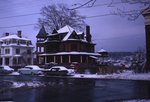 Description :LA MAISON DE L'ACCUEIL VUE DU BALCON DE LA MAISON DE JAMES RIDDLE SANGSTER. LA MAISON EST EN BRIQUES ET EST DE STYLE QUEEN ANNE. ELLE POSSEDE DEUX ETAGES ET DEMI ET CINQ LARGES FENETRES SUR LE DEVANT DONT UNE DANS LE PIGNON. IL Y A DE LA NEIGE...