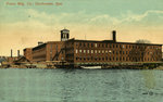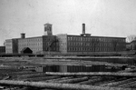 Description :LA MANUFACTURE DE LA MAGOG WOOLEN MILLS SUR LE BORD DE LA RIVIERE MAGOG. CELLE-CI COMPTE QUATRE ETAGES ET DEMI ET EST EN BOIS. EN AVANT-PLAN, LA RIVIERE MAGOG. EN ARRIERE-PLAN, LE BUREAU DE LA MAGOG WOOLEN MILLS SUR LA RUE BELVEDERE.