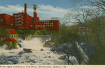 Description :VUE DU BARRAGE NO 4 ET DE LA COMPAGNIE KAYSER SILK MILLS. A DROITE LA CENTRALE SHERBROOKE QUI ALIMENTAIT LA SHERBROOKE STREET RAILWAY CO.