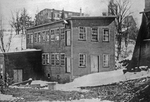 Description :CONSTRUCTION DE DEUX ETAGES EN BOIS. A GAUCHE, UN GARAGE. CELUI-CI EST COLLE SUR LE BATIMENT PRINCIPAL. EN ARRIERE-PLAN, UN BATIMENT SUR LA RUE JENCKES.
