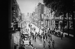 Description :FANFARE SUR LA RUE WELLINGTON NORD. A GAUCHE, DES BOUTIQUES DONT UNE ARBORANT UNE PANCARTE SUR LAQUELLE ON PEUT LIRE "SHOES". DEVANT, LES BOUTIQUES, DES INDIVIDUS ET DES AUTOMOBILES STATIONNEES. A DROITE, DES BATIMENTS DONT, LE THEATRE HIS MAJ...