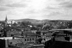 Description :VUE DE SHERBROOKE A PARTIR DU QUARTIER EST. A L'AVANT-PLAN, MAISONS MODESTES EN BOIS. PONT COUVERT DU CHEMIN DE FER. A GAUCHE, AU LOIN, L'HOTEL DE VILLE. SONT EGALEMENT VISIBLES, LE PONT DUFFERIN, L'EDIFICE GRIFFITH, L'ANCIENNE EGLISE ST.PETER...