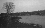 Description :FERME SUR LA RIVE DE LA RIVIERE MAGOG. IL Y A UN PETIT PEU DE NEIGE SUR LES BERGES. EN ARRIERE-PLAN, DES BATIMENTS AGRICOLES APPARTENANT A LA FAMILLE SUMMERS.
