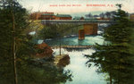 Description :PONT WOLFE (CABANA), BARRAGE HYDRO-ELECTRIQUE ET CENTRALE FRONTENAC A SHERBROOKE SUR LA RIVIERE MAGOG.