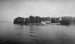 Description :LE LAC MASSAWIPPI ET SES DEUX RIVES. EN AVANT-PLAN, UNE GROSSE MAISON DE DEUX ETAGES ET DEMI ET SES BATIMENTS ANNEXES. A DROITE, UNE AUTRE MAISON. A NOTER L'ABSENCE DE FEUILLE SUR LES ARBRES.