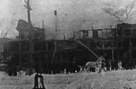 Description :VUE DU SHERBROOKE HOUSE SUR LA RUE DEPOT. ON APERCOIT SURTOUT LE SQUELETTE DE L'EDIFICE. EN AVANT-PLAN, DES POMPIERS ARROSENT LE FEU ET DES INDIVIDUS REGARDENT LA SCENE. IL Y A EGALEMENT UN CHEVAL ATTELE A UNE CHARETTE. A NOTER, DE LA FUMEE S'...
