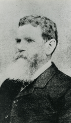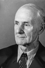 Description :PHOTO EN BUSTE DE A.W. SAUNDERS QUI PORTE UN VESTON NOIR, UNE CHEMISE RAYEE ET UNE CRAVATE A POIS. IL A LES CHEVEUX COIFFES VERS L'ARRIERE.