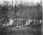 Description :LA STRUCTURE DU NOUVEAU BARRAGE VUE DU BOUT DE LA RUE ISLAND. EN AVANT-PLAN, DES ARBRES. EN ARRIERE-PLAN, DES MAISONS SUR LA RUE FRONTENAC.