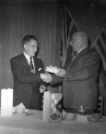 Sujet principal :TREIZIEME BANQUET ANNUEL POUR HONORER LES TRAVAILLEURS QUI SONT AVEC PAGE-SANGSTER PRINTING CO. DEPUIS 25 ANS
