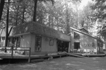 Description :LE THEATRE DU THE DES BOIS SITUE A DEAUVILLE. LE THEATRE EST DE STYLE "INTERNATIONAL". LA PARTIE DE GAUCHE A UN TOIT ARRONDI ALORS QUE LA PARTIE DE DROITE A UN TOIT EN PENTE AVEC LA PRESENCE D'UNE LUCARNE. LA PARTIE DU CENTRE EST FERMEE AU PUB...