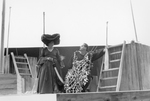 Description :27.1 ET 27.2 - L'HISTOIRE (RITA LAVERDIERE) ET LE FLEUVE (JOSE MALLETTE) PARLENT DU TEMPS DES CANOTIERS. L'HISTOIRE PORTE UNE ROBE DU XVIIIE SIECLE, UN TRICORNE ET UNE EPEE. DE SON COTE, LE FLEUVE PORTE UN GILET ET UN PANTALON NOIR AVEC PAR-DE...