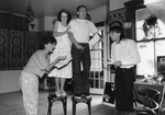 Description :ISABELLE BOISCLAIR EST EN TRAIN DE DIRE SON TEXTE. DURANT CE TEMPS, LES AUTRES COMEDIENS, MARTINE DOSTIE, JACQUES JALBERT ET DENYS CARON, ONT UNE EXPRESSION ETONNEE VOIRE APEUREE. A NOTER, MARTINE DOSTIE ET JACQUES JALBERT SONT DEBOUT SUR UNE ...