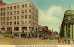 Description :VUE DE LA RUE WELLINGTON A PARTIR DE LA RUE KING OUEST. ON APERCOIT DES AUTOMOBILES, DES PIETONS ET DES FEUX DE CIRCULATION