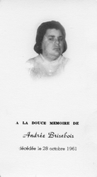Notes :ANDREE BRISEBOIS EST DECEDEE LE 28 OCTOBRE 1961.