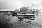 Description :1.1 - LE TRAVERSIER VUE DE COTE. ON PEUT LIRE "CITE DES TROIS-RIVIERES". ON DISTINGUE DES AUTOMOBILES A BORD. DE LA FUMEE NOIRE S'ECHAPPE DE LA CHEMINEE. QUAI AVEC ENTREPOT EN ARRIERE-PLAN. VAGUES DE DEPLACEMENT VISIBLES DANS LE FLEUVE. REFLET...