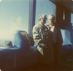 Description :EUCLIDE ET CARMEN DECOSTE DEVANT DE GRANDES FENETRES. ILS SEMBLENT ETRE DANS UN ENDROIT D'OBSERVATION SUR UN BATEAU.