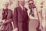 Description :GROS PLAN DE GRATIA FORTIER, DE SON FILS ROBERT ET DE L'AMIE DE CELUI-CI, MLLE MAILLE. GRATIA PORTE UNE JUPE, UNE CHEMISE NOIRE A POIS, UNE VESTE ET TIENT UN SAC A MAIN. POUR CE QUI EST DU COUPLE, ROBERT PORTE UN HABIT ET UNE CRAVATE, CECILE M...