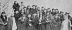 Description :GROUPE DE FEMMES ASSEZ AGEES PHOTOGRAPHIEES AVEC LEUR MANTEAU ET CHAPEAU D'HIVER. A GAUCHE, DEUX FEMMES SEMBLENT ETRE DANS UN ESCALIER. A DROITE, DERRIERE L'INFIRMIERE, GRATIA FORTIER LA MERE DE CARMEN FORTIER.