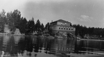 Description :6.1 - VUE D'UN CHALET AU BORD D'UN LAC. CE DERNIER POSSEDE DEUX ETAGES. L'ARRIERE DU PREMIER ETAGE EST ENTIEREMENT VITRE ET A UNE FORME ARRONDIE. LE DEUXIEME ETAGE EST DE SON COTE EN RONDELLES DE BOIS AVEC STUC ET LAISSE ENTREVOIR DES CHEMINEE...