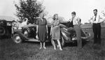 Description :3.1 - GROUPE DEVANT UNE AUTOMOBILE: GRATIA FORTIER, MARC-ANDRE FORTIER, ROBERT LEMIRE. EN ARRIERE-PLAN A GAUCHE: UNE AUTRE AUTOMOBILE ET TROIS PERSONNES (? GOYETTE, MARCEL FORTIER ET GUY BEGIN). LA VOITURE EST GAREE DANS UN CHAMP. 3.2 - GUY BE...
