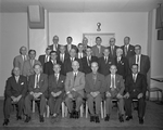 Description :L'INTERIEUR DU CLUB BELLEVUE SOUS DIFFERENTS ANGLES. 1.1 - INVITES PRENANT LA POSE, PREMIERE RANGEE: DE GAUCHE A DROITE, M ET MME HENDERSON, CHEF DES CLANS, PUIS, CINQUIEME DE CETTE PREMIERE RANGEE, LE MAJOR BILL EDWARDS, DU BUREAU DU PERSONNE...