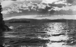 Description :VUE DU LAC AVEC VAGUES ET REFLETS DU SOLEIL. A GAUCHE, MONT OWL'S HEAD. EN ARRIERE-PLAN, LE SOLEIL PERCE LES NUAGES.