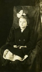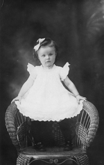 Description :ENFANT ASSISE SUR UNE CHAISE RECOUVERTE DE DRAPERIE. PORTE UN MANTEAU ET TIENT UN CHAPELET DANS LA MAIN DROITE. IL S'AGIT PEUT ETRE D'UNE FILLETTE MORTE.