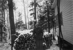 Description :2.1 CARMEN DECOSTE DEVANT DES BUCHES EMPILEES. A DROITE, SON CHALET. EN ARRIERE-PLAN, DES ARBRES. 2.2 - VUE D'UN SENTIER A TRAVERS LE BOIS.