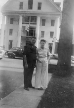 Description :20.1 - EUCLIDE ET CARMEN DECOSTE DEVANT LE THAYER HOTEL ET SA FACADE CONSTITUEE DE QUATRE COLONNES GRECQUES. A NOTER, IL Y A DES AUTOMOBILES SUR LA RUE. 20.2 - AU CENTRE, CARMEN DECOSTE ET THERESE GOYETTE ASSISES SUR UN BANC. A DROITE, PROBABL...