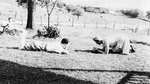 Description :26.1 - CARMEN FORTIER A DROITE EST AGENOUILLEE CAMERA AU SOL. MARCEL FORTIER EN FACE EST ETENDU SUR LE VENTRE LES BRAS CROISES SOUS LE VISAGE. EN ARRIERE-PLAN, FERME, CHAMPS, CLOTURES, CHEMIN DE TERRE, ENFANT. 26.2 - PORTRAIT DE MARCEL FORTIER...