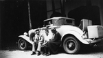 Description :ROBERT LEMIRE, MARC-ANDRE FORTIER ET GRATIA FORTIER ASSIS SUR LE MARCHE-PIED D'UNE AUTOMOBILE BLANCHE. CARMEN FORTIER ASSISE SUR LE SIEGE DU CONDUCTEUR. LA VOITURE EST EN BORDURE D'UN CHEMIN DE TERRE. DETAILS INTERESSANTS SUR LA VOITURE: COFFR...